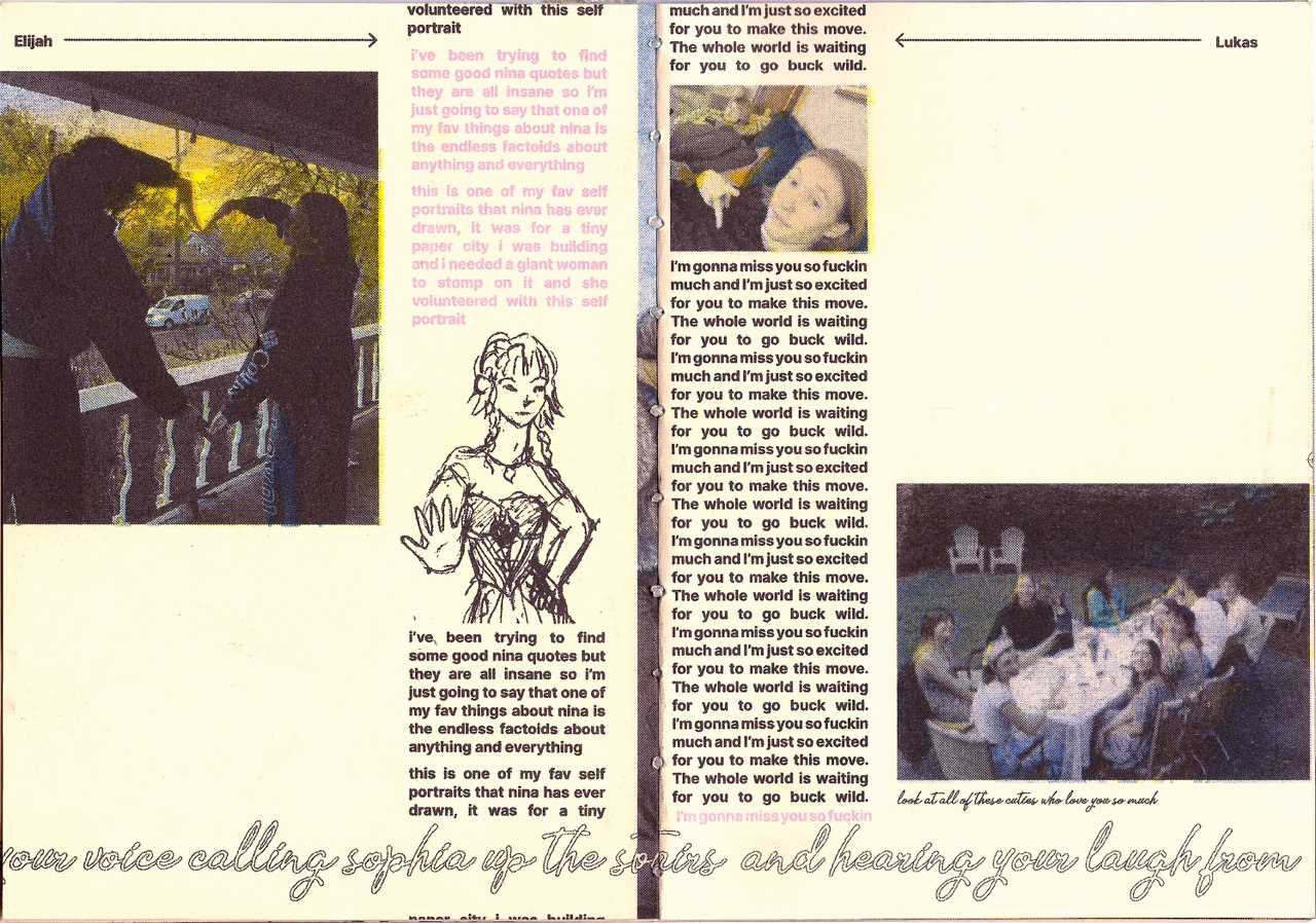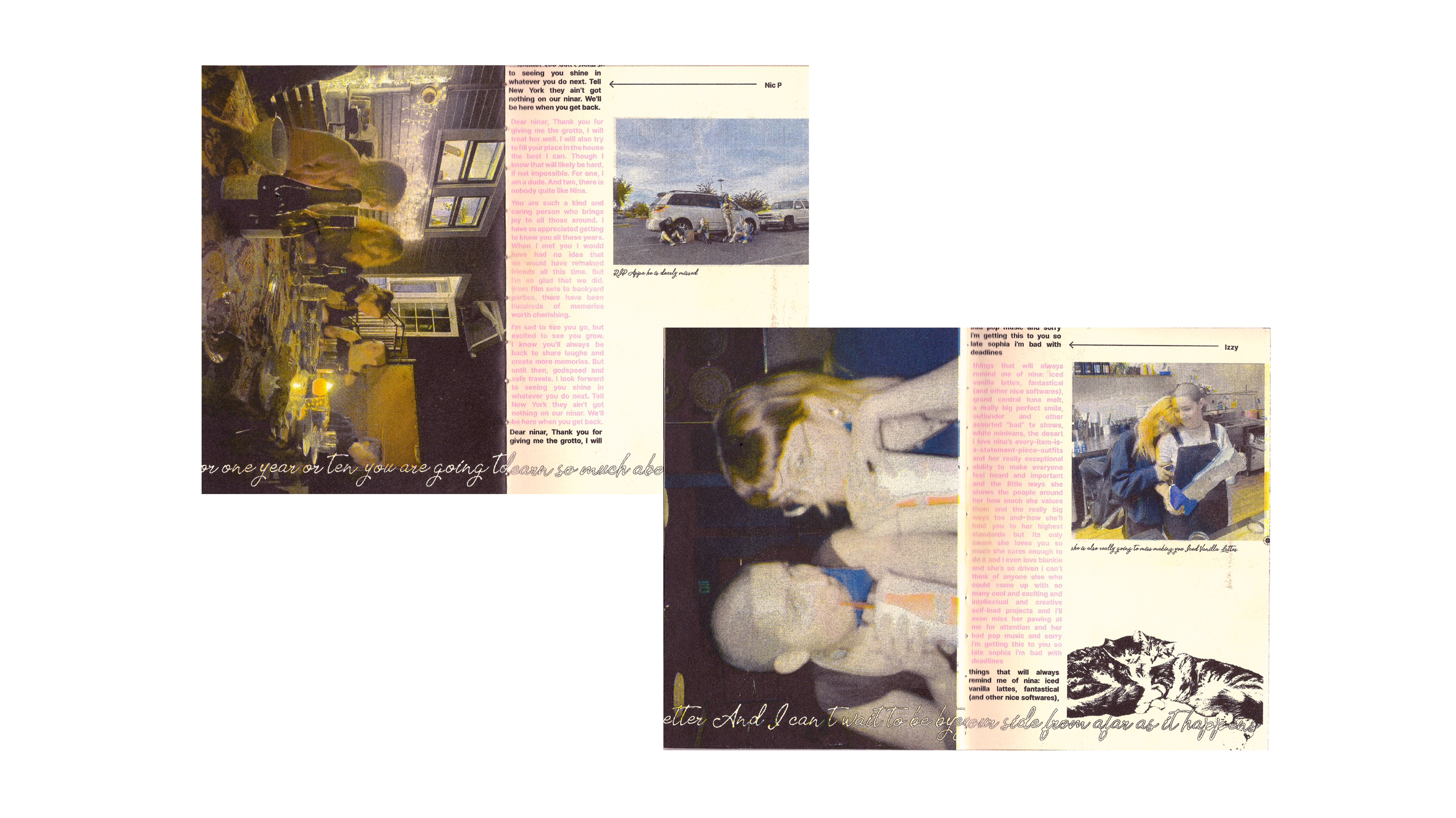 A gift for my dearest friend when she moved away from home this past summer. A collection of letters from loved ones, designed to feel handmade and full of joy, with the gauze of nostalgia guiding the type, layout, and image manipulation. Four color risograph print.