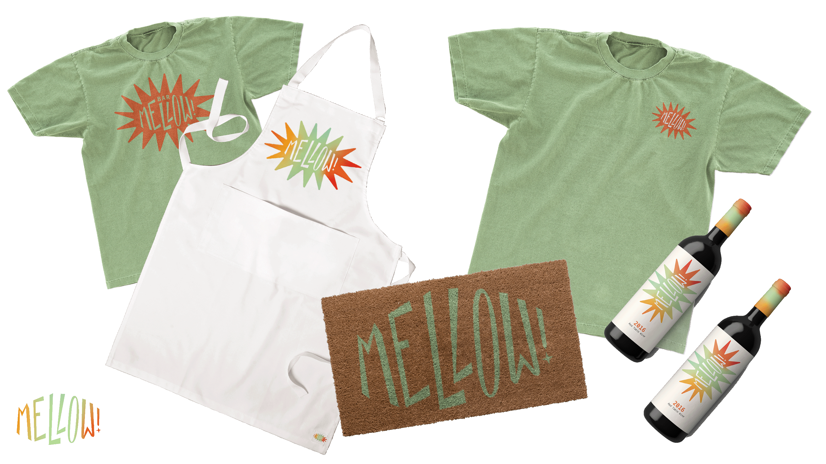 Mellow, a casual wine bar and community space has a wordmark embodies the eclectic and the vibrant emphasizing that Mellow is a more casual version of your classic wine bar. The juxtaposition of a cozy calm name and a loud and energetic identity emphasizes it’s vibrant, easy atmosphere, and the broad system of collateral allows Mellow to become it’s own little world.