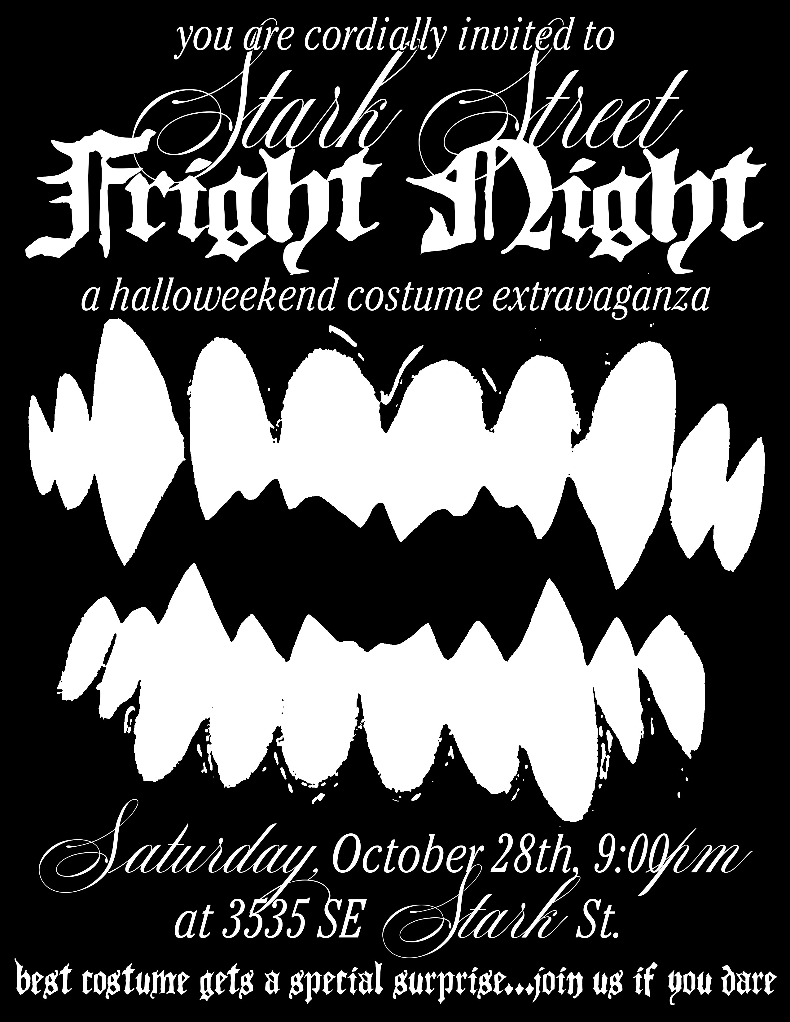 A series of posters, one for every party and event that my roommates and I have hosted when we lived at 3535 SE Stark St (not my current address, don’t get any ideas). All for funsies, made quick and with lots of love, for my friends.